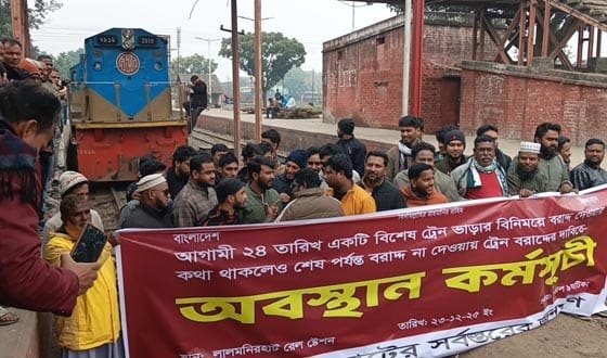 লালমনিরহাট থেকে বুড়িমারী, কুড়িগ্রাম এবং পার্বতীপুর হয়ে সারা দেশের সঙ্গে রেল যোগাযোগ সম্পূর্ণ বন্ধ হয়ে পড়েছে। স্টেশনে আটকা পড়ে নারী ও শিশুসহ শত শত সাধারণ যাত্রী চরম ভোগান্তির শিকার হচ্ছেন।