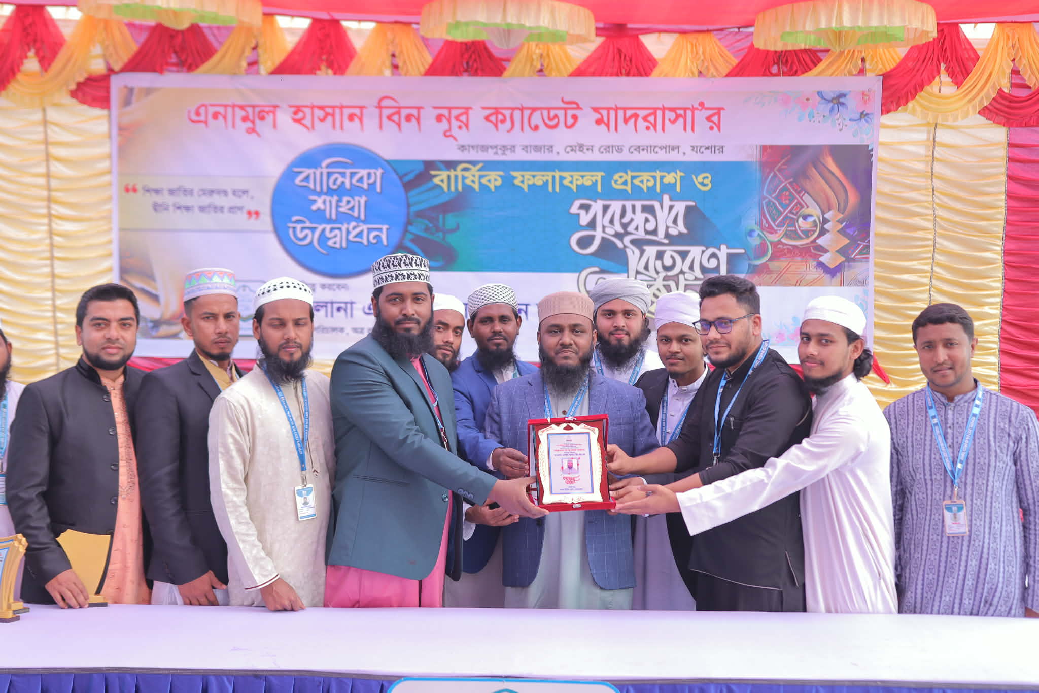 শিক্ষা জাতির মেরুদণ্ড হলে, দ্বীনি শিক্ষা জাতির প্রাণ, স্লোগানে স্বল্প সময়ে অত্যাধিক সুনাম অর্জনকারী দ্বীনি শিক্ষা প্রতিষ্ঠান যশোরের বেনাপোল পোর্ট থানার কাগজ পুকুর বাজার সংলগ্ন, এনামুল হাসান বিন নূর ক্যাডেট মাদরাসা’র বার্ষিক পরীক্ষার ফলাফল প্রকাশ ও পুরস্কার বিতরণ অনুষ্ঠান এবং বালিকা শাখা উদ্বোধন করা হয়। শনিবার (২৭ ডিসেম্বর) মাদ্রাসা ভবনের সামনে খোলা মাঠে অনুষ্ঠানটি অনুষ্ঠিত হয়।